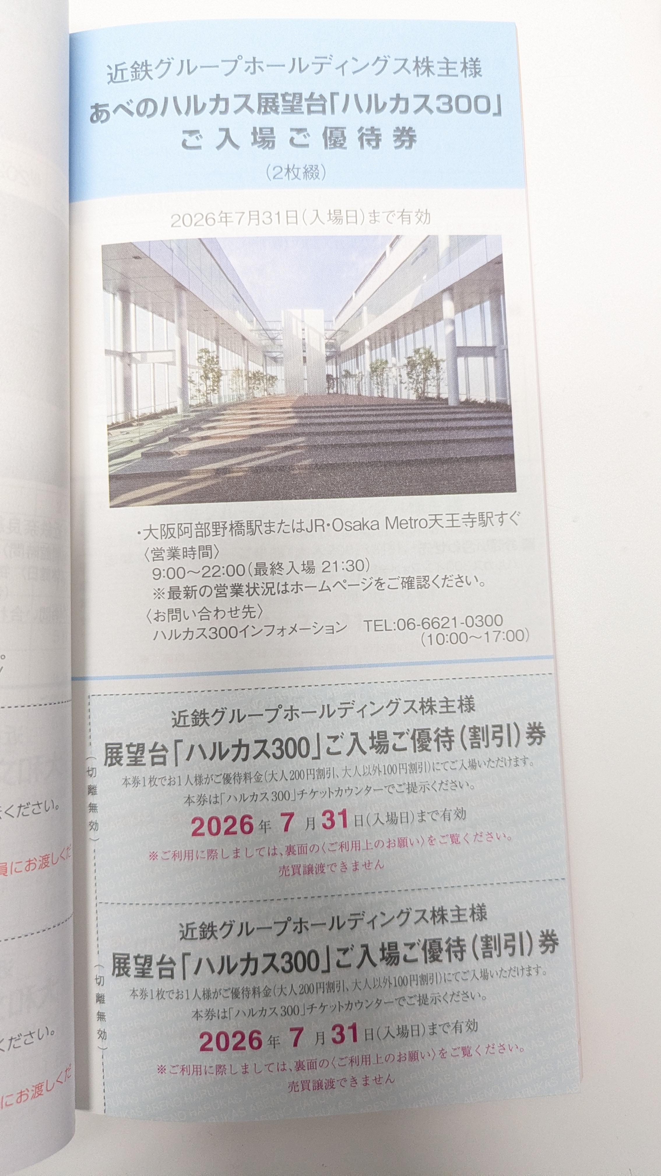 【近鉄】株主優待冊子(志摩スペイン村/パルケエスパーニャ 割引券2枚付き)2026年7月末期限