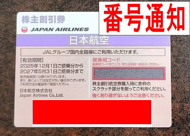 【JAL 日本航空】株主優待番号 2027年5月末期限【番号通知】飛行機