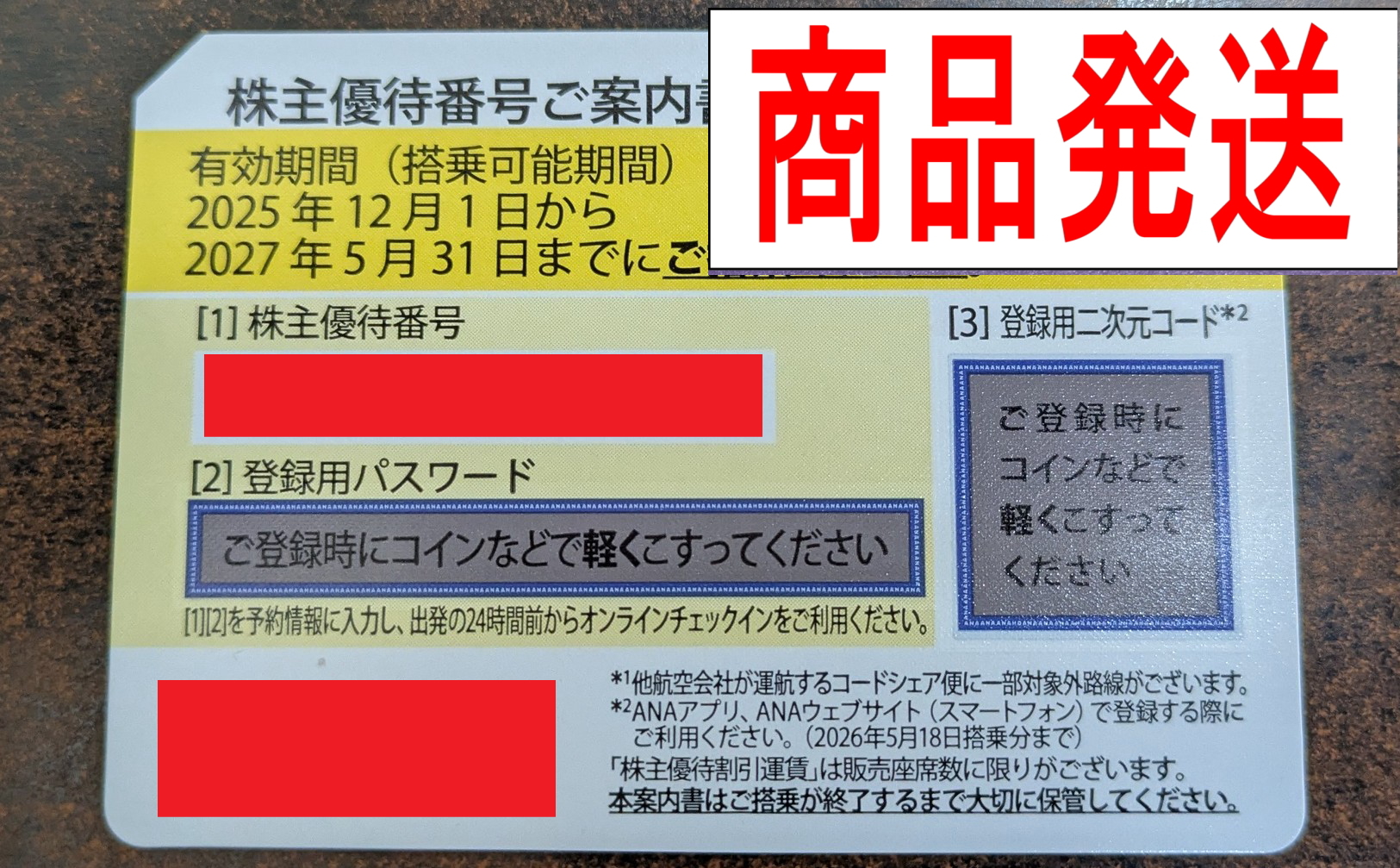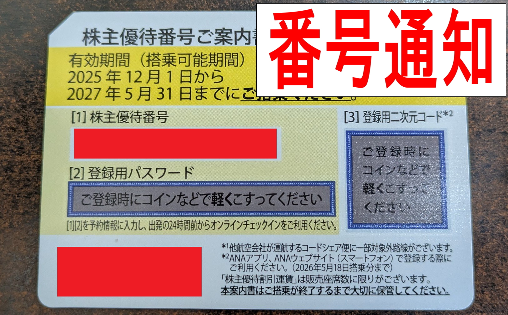 【ANA 全日空】株主優待番号 2027年5月末期限【番号通知】飛行機