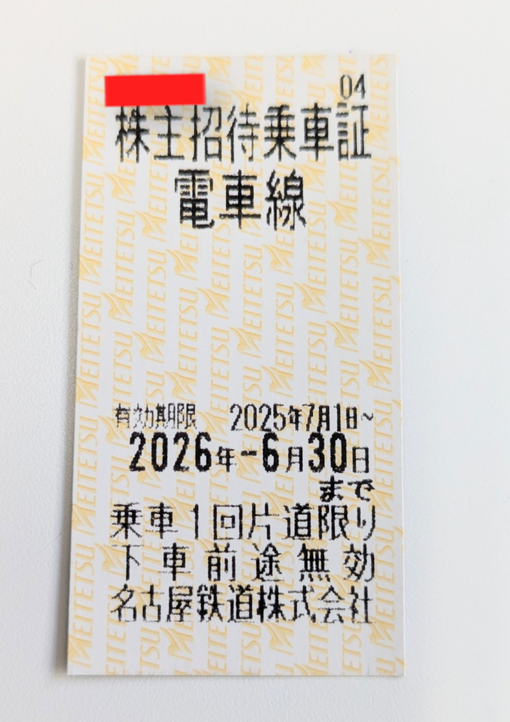 【名鉄】株主優待 全線乗車券 2026年6月30日期限