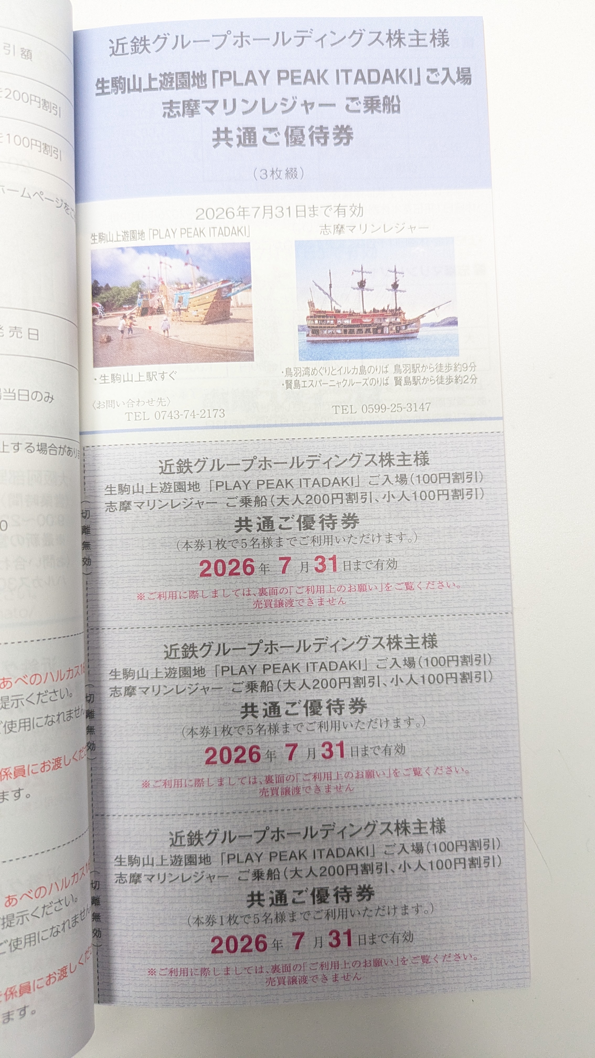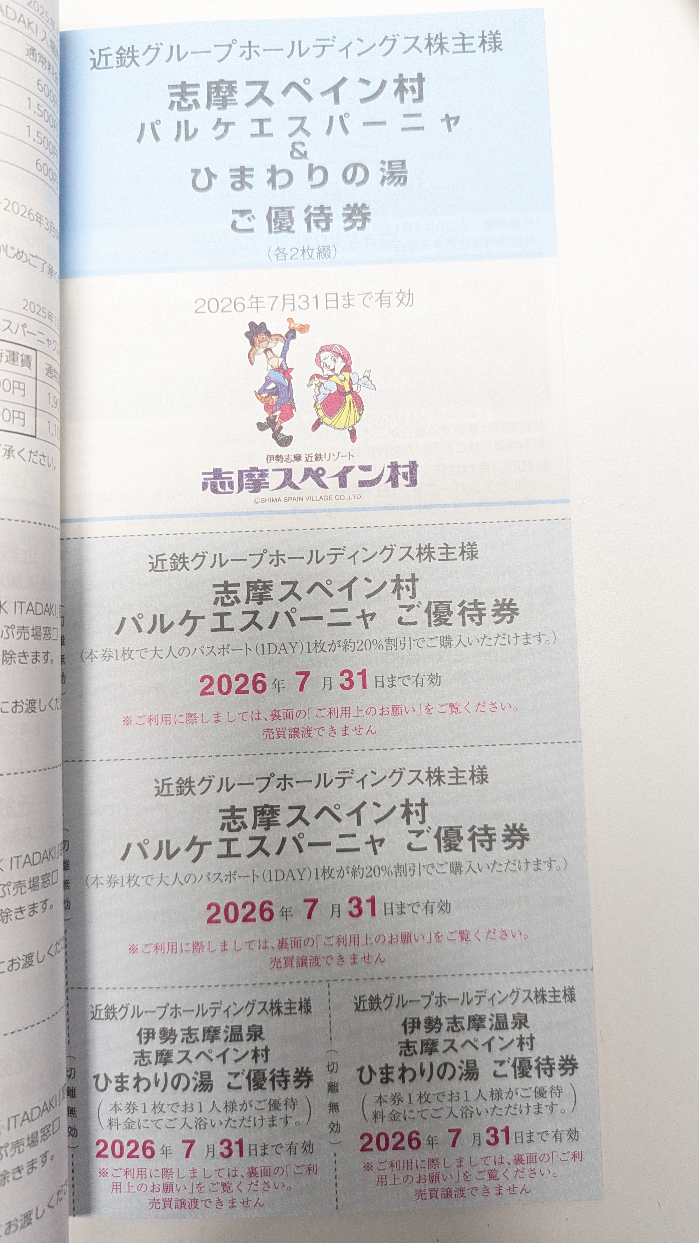 【近鉄】株主優待冊子(志摩スペイン村/パルケエスパーニャ 割引券2枚付き)2026年7月末期限