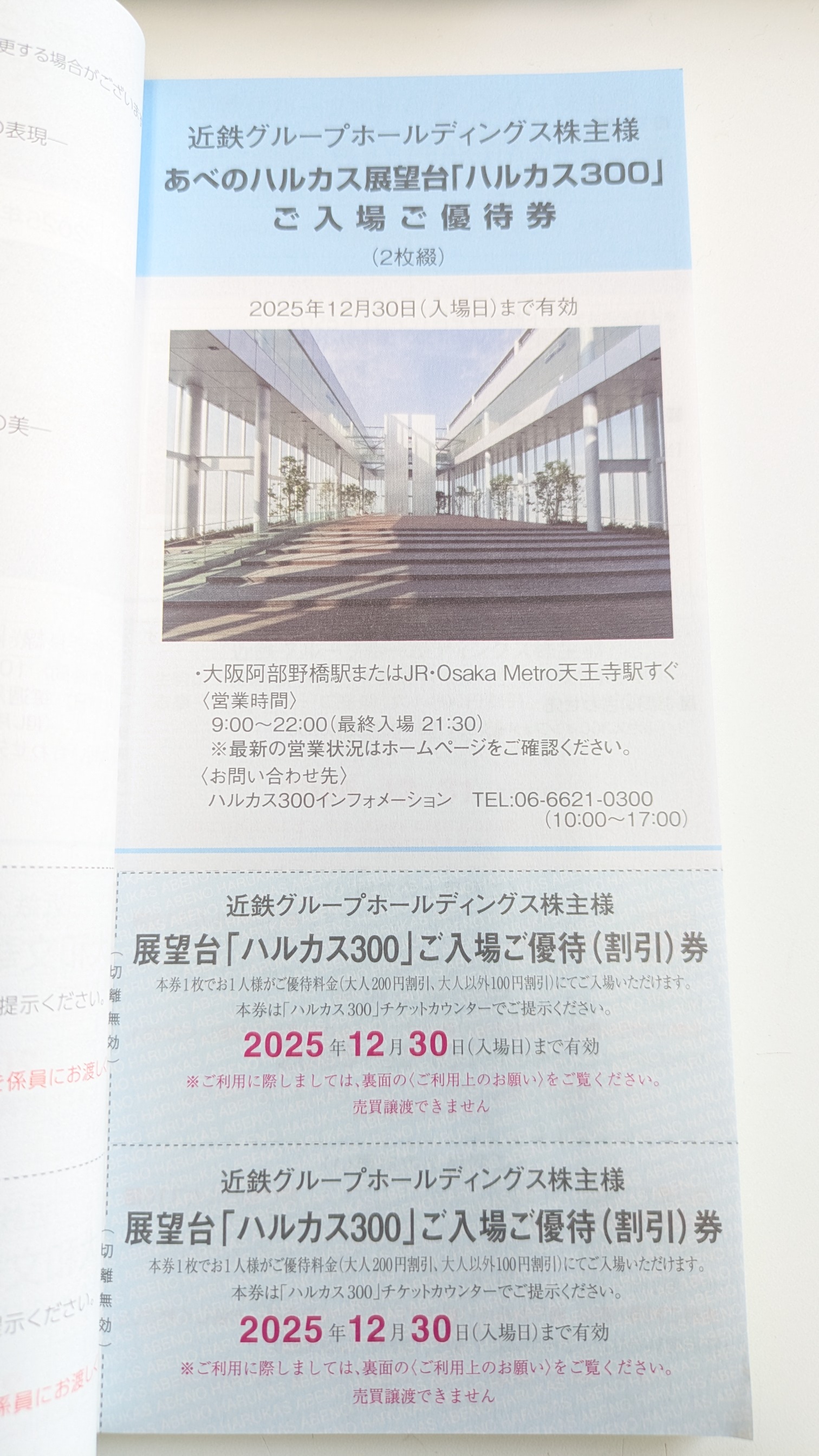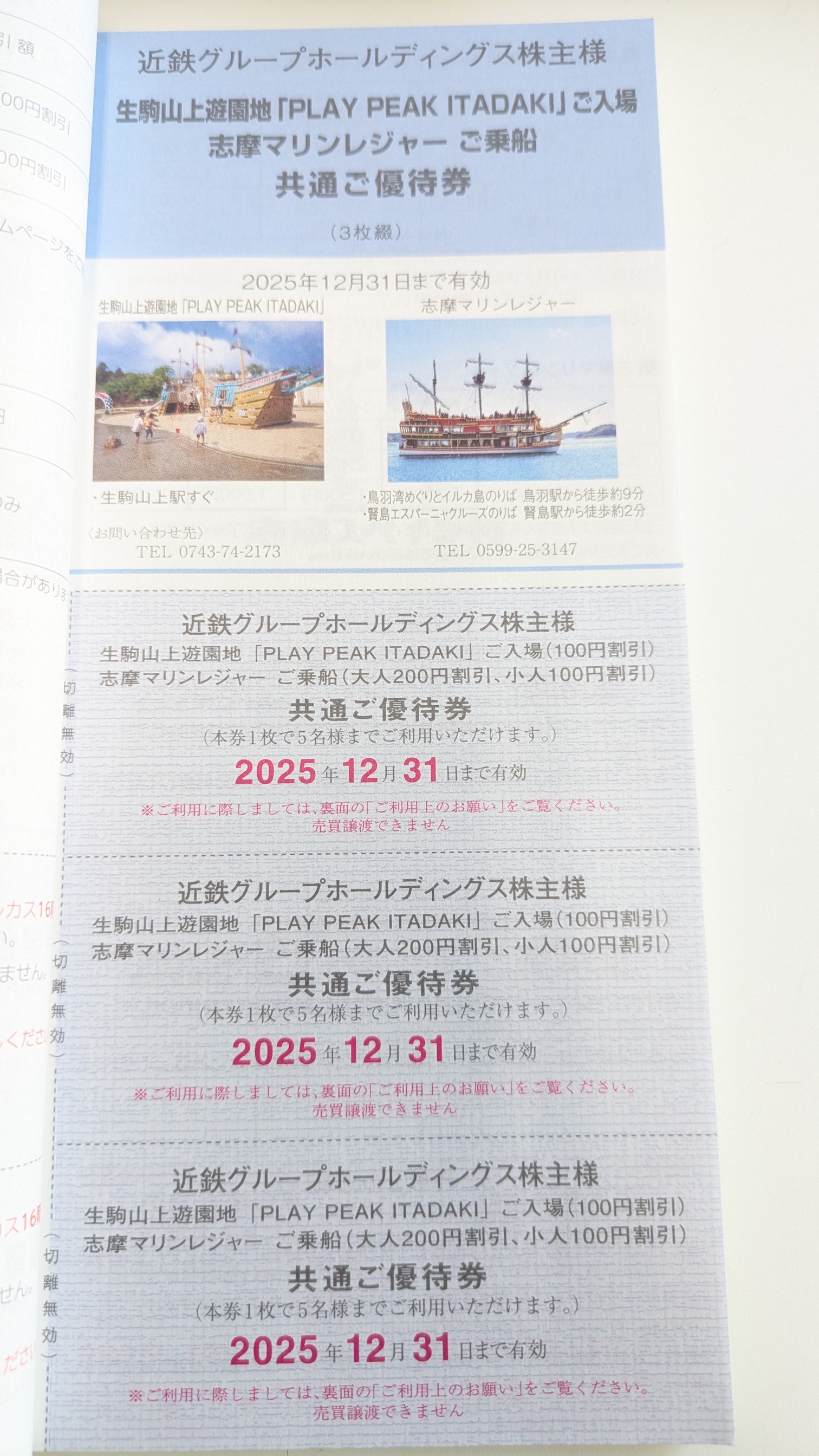 【近鉄】株主優待冊子(志摩スペイン村/パルケエスパーニャ 割引券2枚付き) 2025年12月末期限