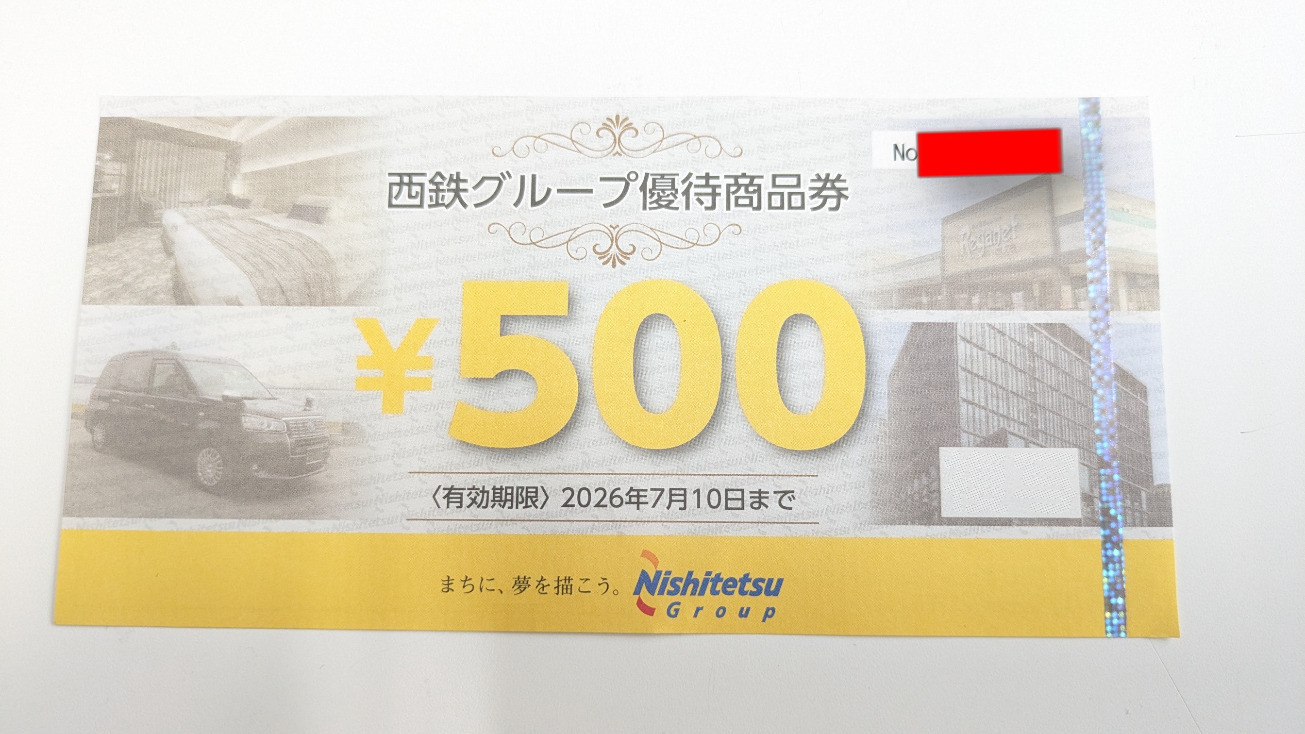 【西鉄グループ】株主優待券 500円 2026年7月10日期限 西日本鉄道